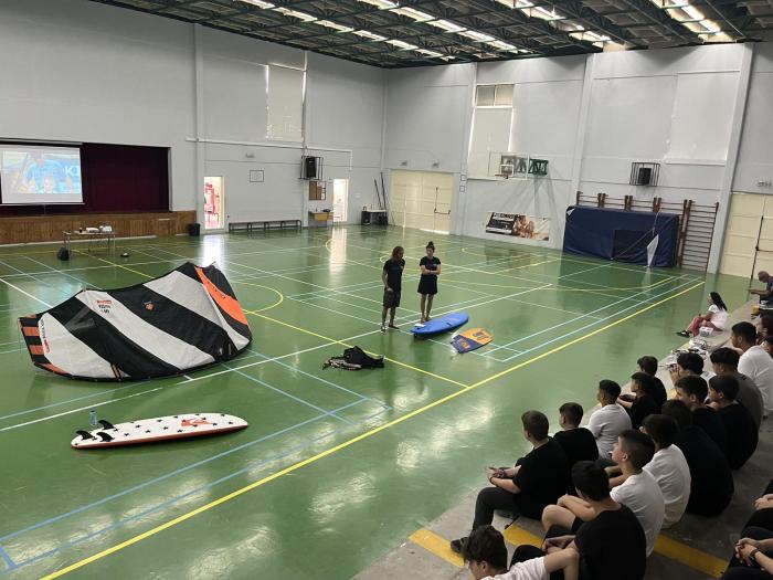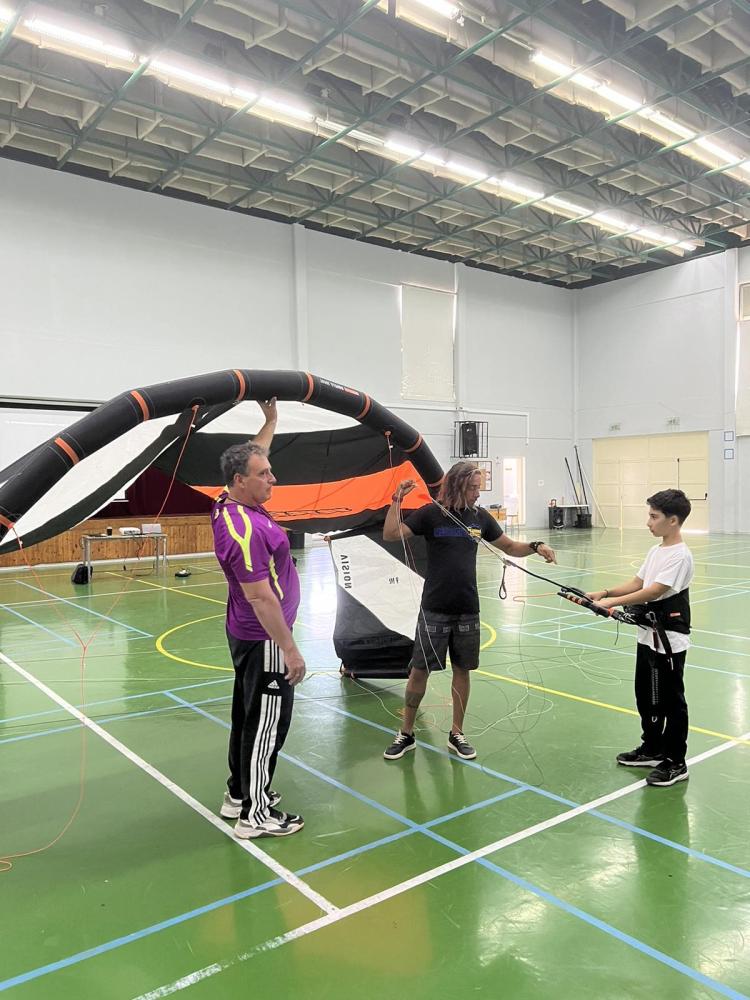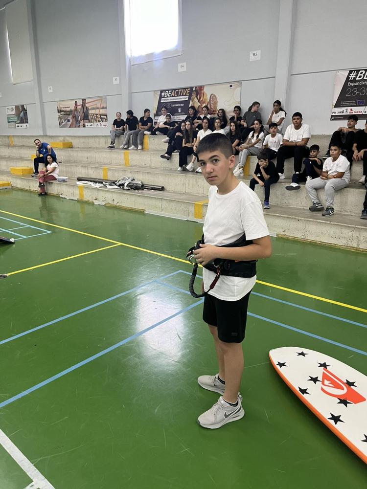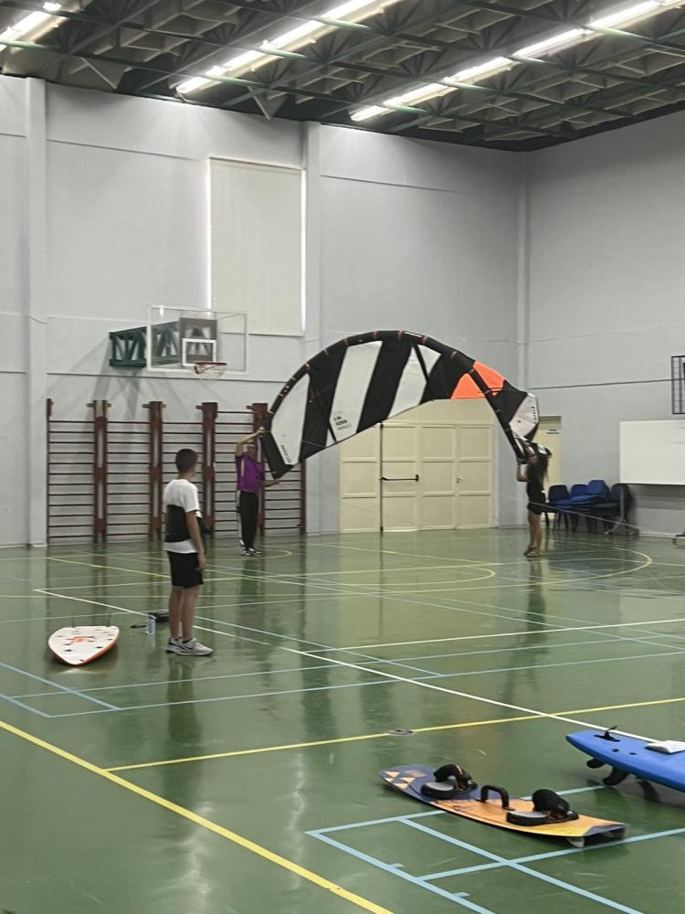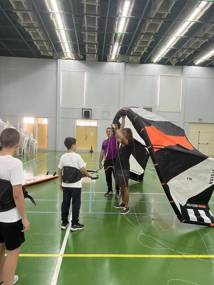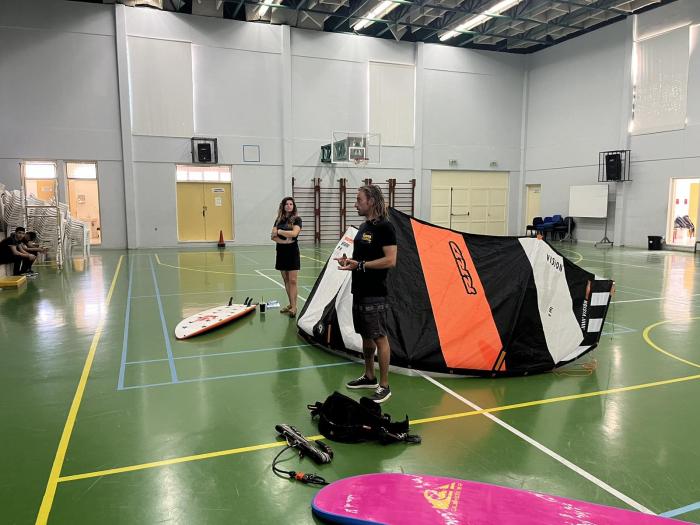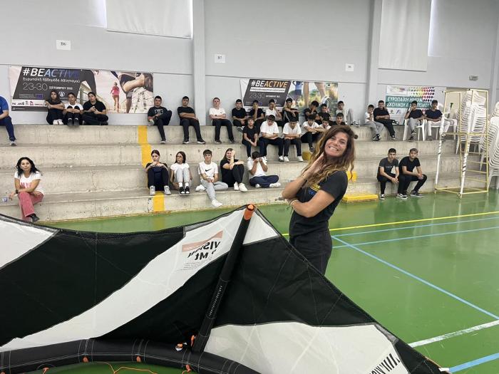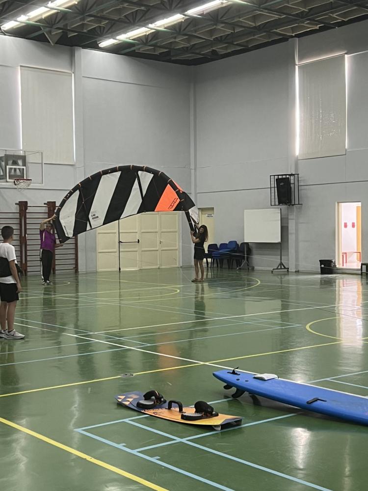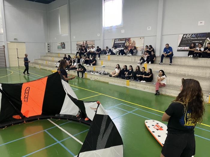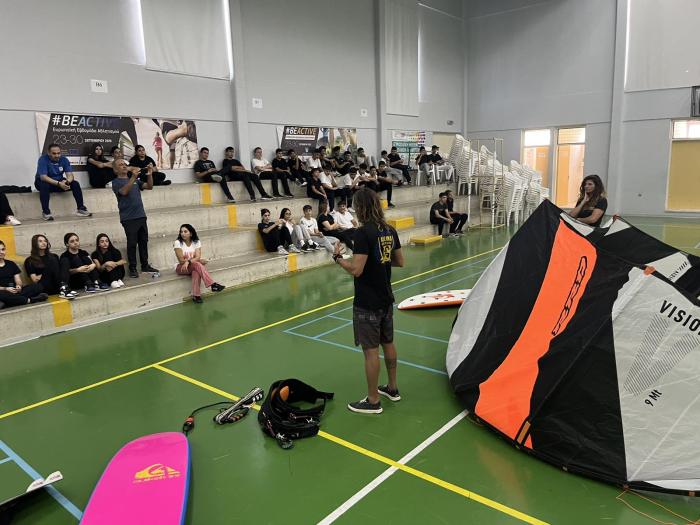 Θα παρουσιαστούν σε στατική έκθεση Kite surfs και windsurfs στα παιδιά του σχολείου μας και κατόπιν προσομοίωση ανύψωσης των θόλων των Kitesurfs στό ανοικτό γήπεδο του σχολείου, ώστα να δωθεί ένα κίνητρο σε όλους τους μαθητές να στραφούν προς αθλήματα περιπέτειας που συνδυάζουν ικανότητες, απαράμιλη ψυχική ανάταση και δίνουν στον αθλούμενο υψηλή αίσθηση ελευθερίας.