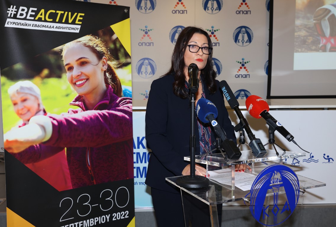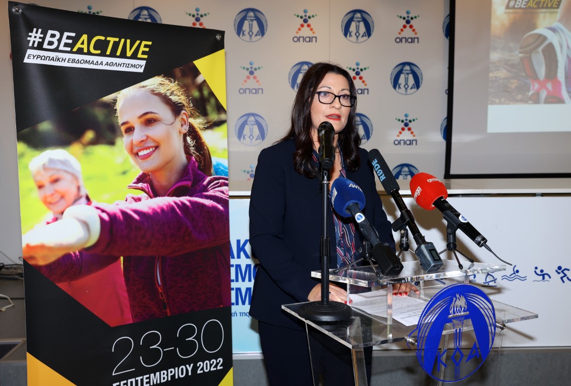 Η Γενική Διευθύντρια του Οργανισμού εστίασε στην ομιλία της στην επιτυχία και την αξία του προγράμματος #BeActive, κάνοντας ειδική μνεία στις «515 δράσεις που πραγματοποιήθηκαν από τους φορείς που εκδήλωσαν ενδιαφέρον με τη δωρεάν συμμετοχή 151.000 πολιτών». Υπογράμμισε επίσης τη σημασία του νέου Ευρωπαϊκού Χρηματοδοτικού Προγράμματος Erasmus+ που «δίνει τη δυνατότητα για έγκαιρο προγραμματισμό των δράσεων της 9ης Ευρωπαϊκής Εβδομάδας Αθλητισμού 2023», με απώτερο στόχο «να έχουν την ευκαιρία οι συμπολίτες μας να βάλουν την αθλητική ενασχόληση στη ζωή και την καθημερινότητά τους».